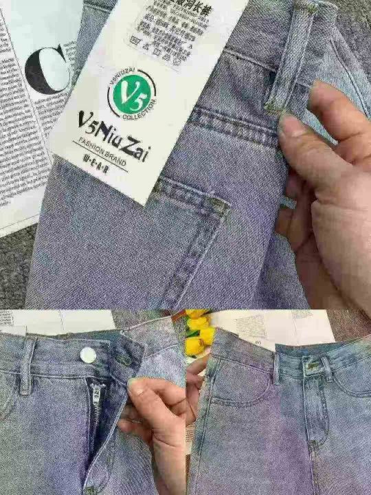 全清9.8垂坠感女装mm宽松显瘦高腰破洞开叉牛仔裤,网络...