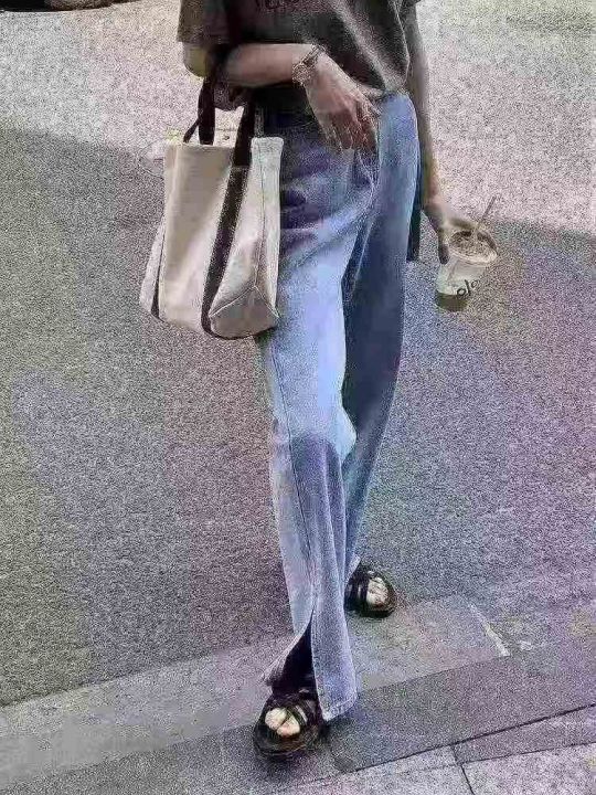 垂坠感女装mm宽松显瘦高腰破洞开叉牛仔裤,网络图仅供参考,码数:XS-XL,数量281条,独立包装