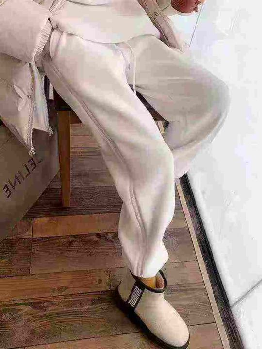 405条白色休闲高腰加绒裤子女装秋冬季直筒束脚卫裤,整款3个颜色,独立包装...