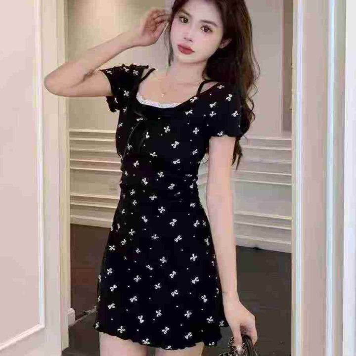 [月亮]:7.5清414件[月亮]:气质蕾丝边蝴蝶结印花假两件连衣裙[月亮]:234...