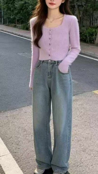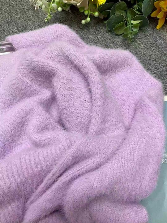 春秋新款法式复古紫色方领高级感弹力修身显瘦水貂毛针织毛衣开衫,独立包装,均码面料软糯舒适,130件,全清7.9元超低价秒杀!