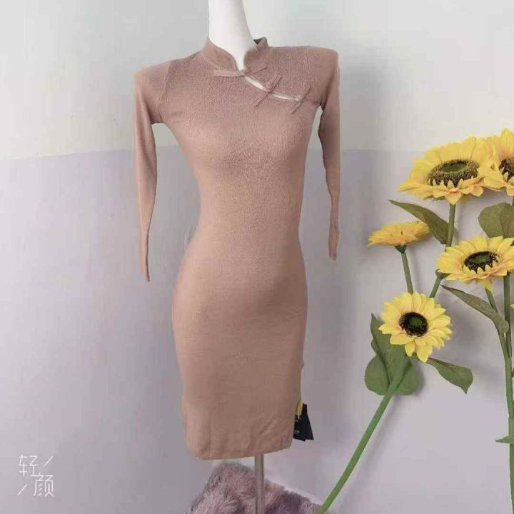 品牌新中式国风盘扣旗袍毛衣连衣裙,女包臀开叉长裙,...