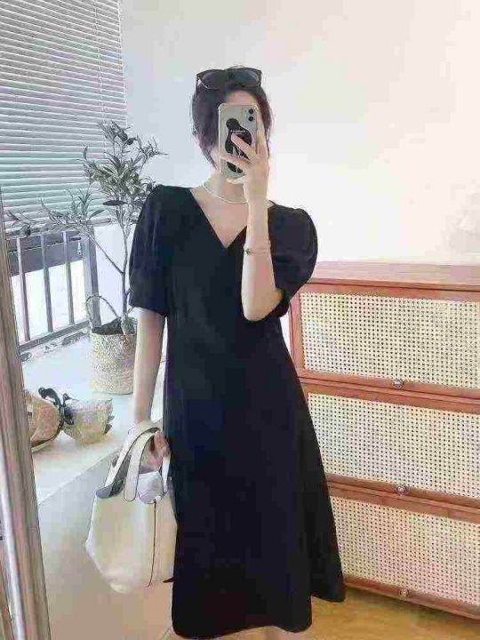 150件左右黑色气质赫本风V领茶歇法式高级感小黑裙连衣...