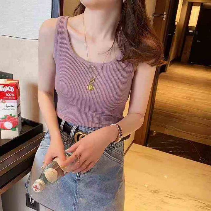 260件左右螺纹吊带背心女修身外穿内搭打底衫宽肩带靓...