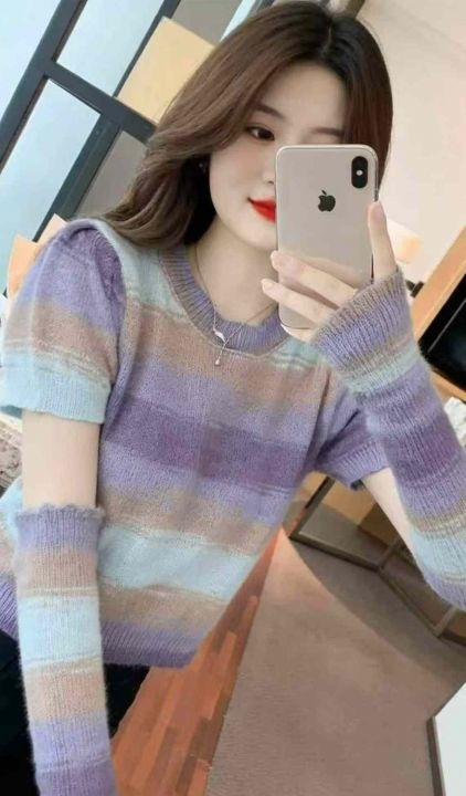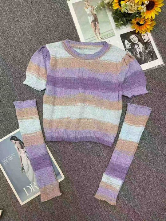 春秋新款网红复古撞色彩虹条纹氛围感穿搭可拆卸长袖短款针织套头毛衣,独立包装,均码面料软糯舒适,605套,全清6.9元超低价秒杀!分货加一!。 货号:24862