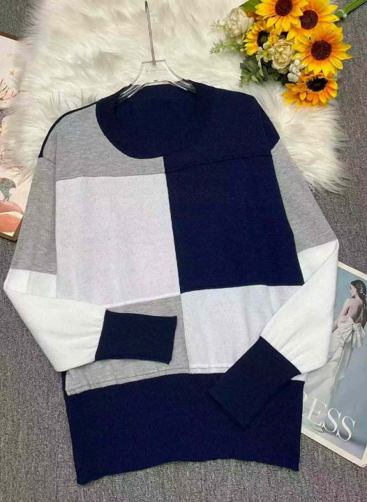 秋冬新款撞色拼接设计款宽松百搭轻熟女装圆领套头毛衣,独立包装,均码面料柔软舒适,190件,全清6.9元超低价秒杀!