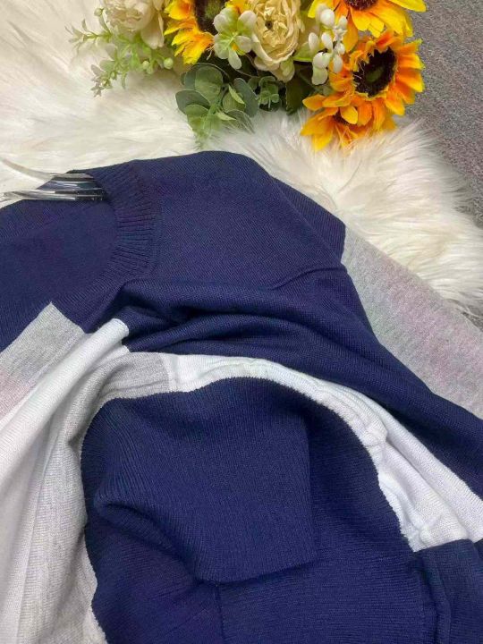秋冬季新品韩版宽松百搭撞色条纹设计款加厚包芯纱套头毛衣,独立包装,均码...