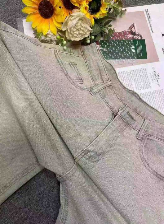 春秋新款高弹力洗水棉网红复古黄泥色牛仔直筒裤,独立...