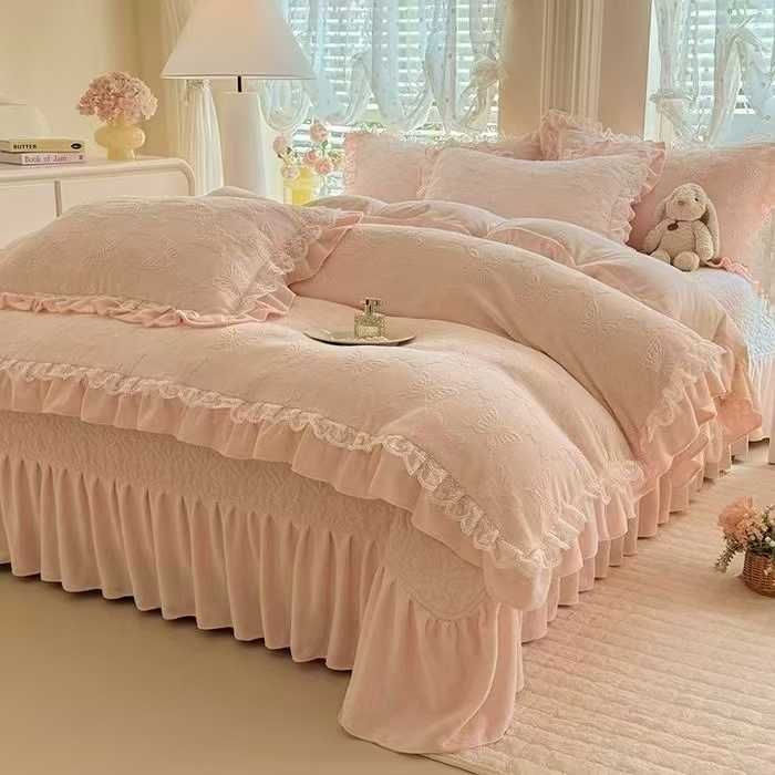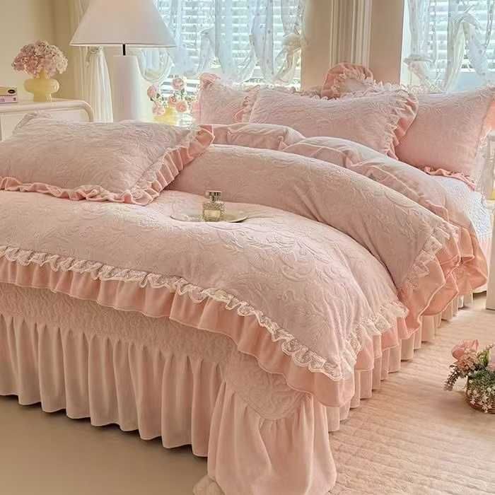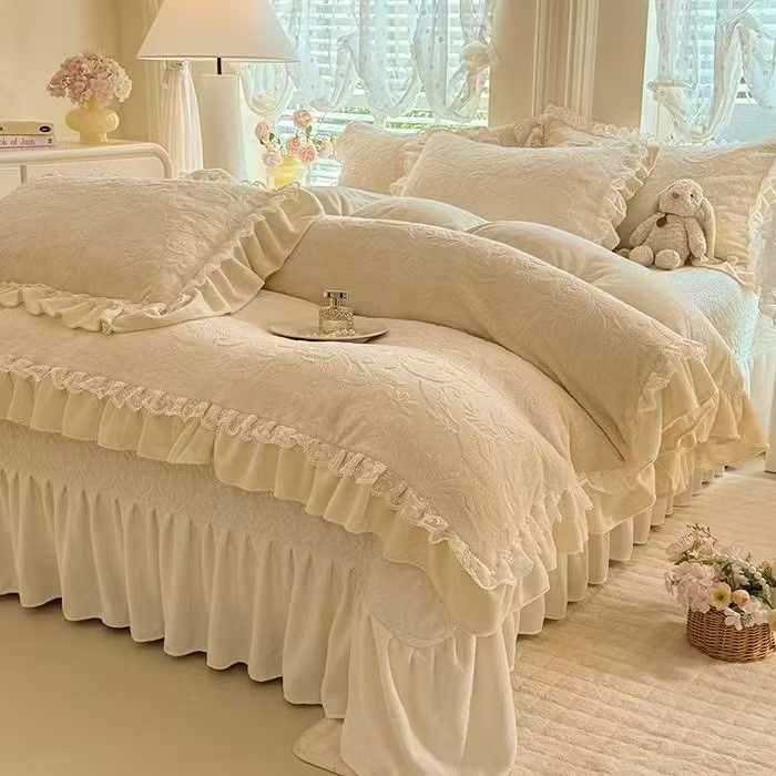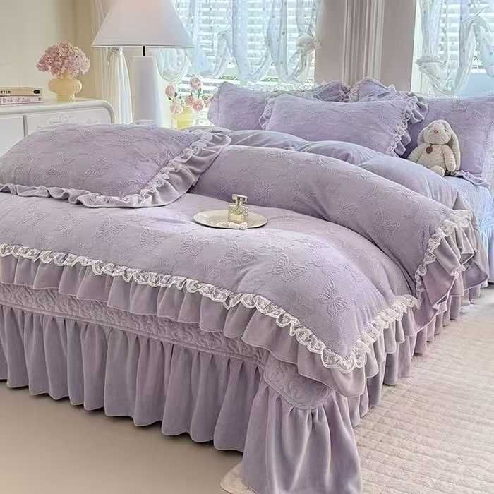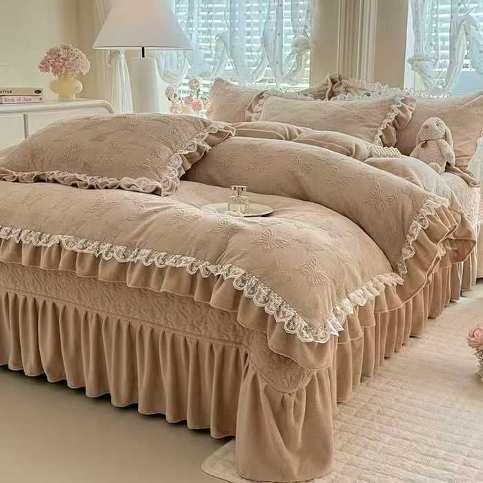 法式加厚牛奶绒床盖款四件套下单图 一套重量约9斤...