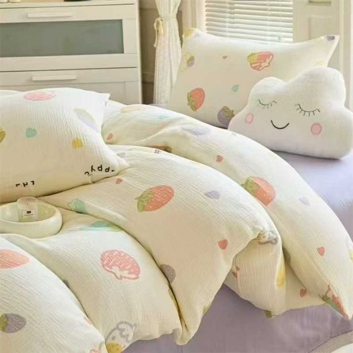 全棉皱皱纱四件套全部小清晰得,四个花型,标准尺寸礼盒包装1500套。