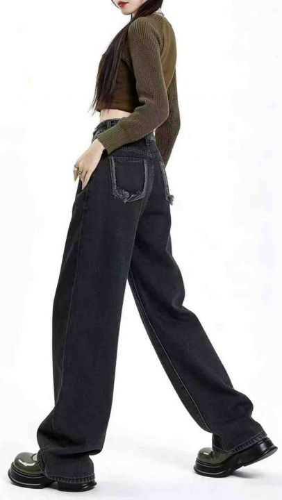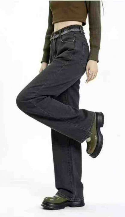 春秋新款洗水棉网红复古直筒阔腿牛仔裤,独立包装带腰...