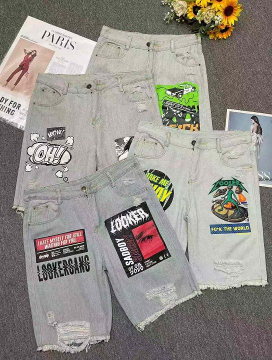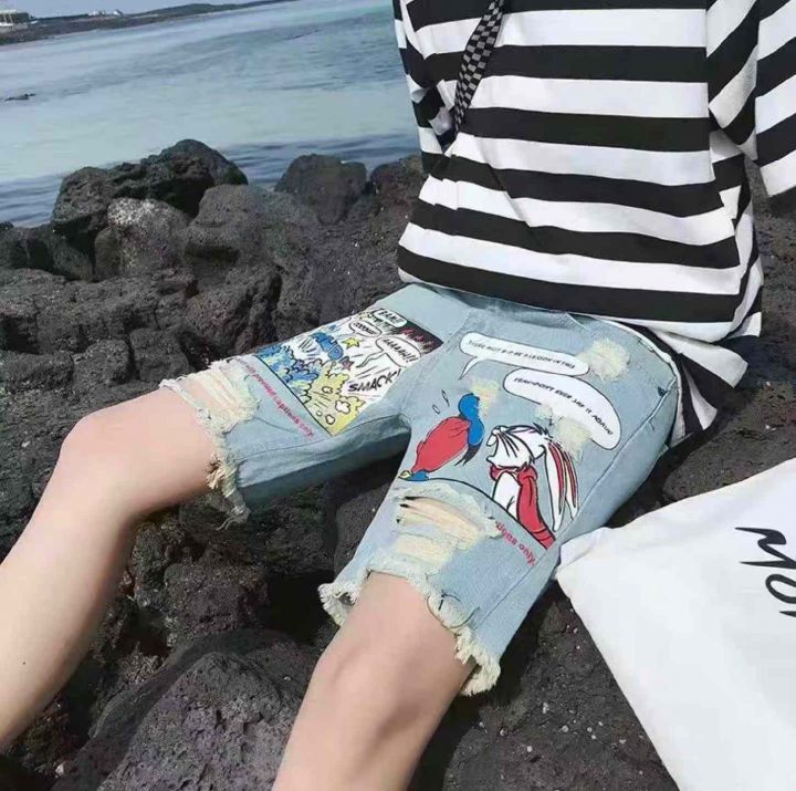 夏季新款时尚个性卡通印花男士牛仔短裤,独立包装,码...