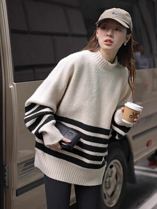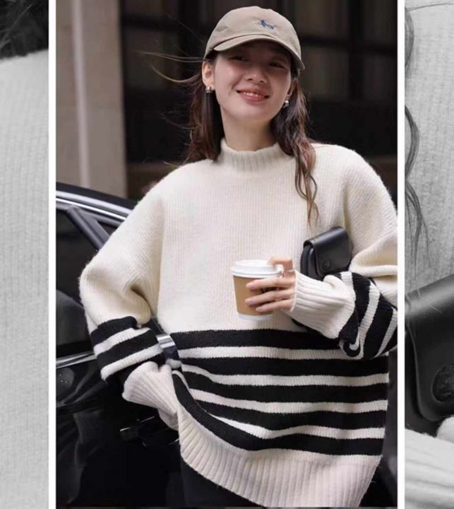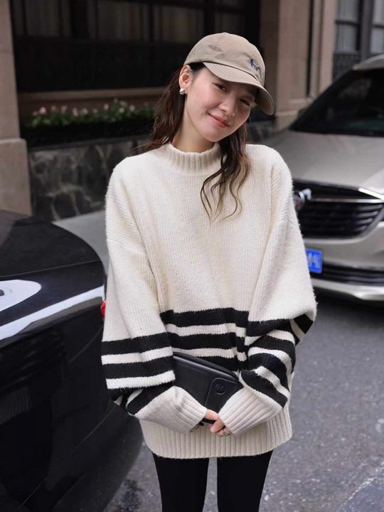秋冬新款高品质宽松百搭复古慵懒中长版半高领加厚北极...