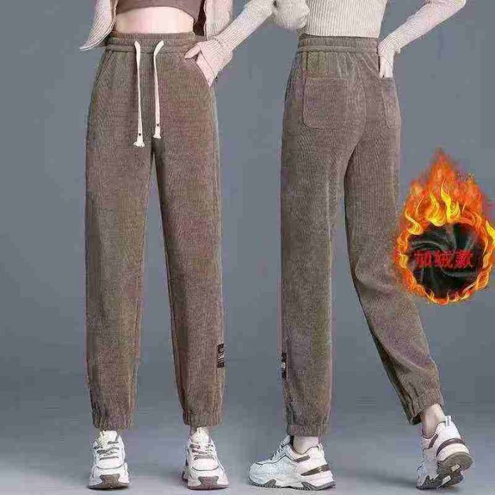 冬季新款加绒哈伦宽松毛裤时尚束脚百搭休闲裤冬天裤子,整款两色,独立包装...