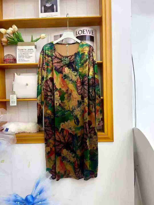 ① 秋冬高贵古风金丝绒连衣裙!版型宽松,独立包装带吊牌,码数L-4XL,数量100件左右,全清8.8元。 货号:24862