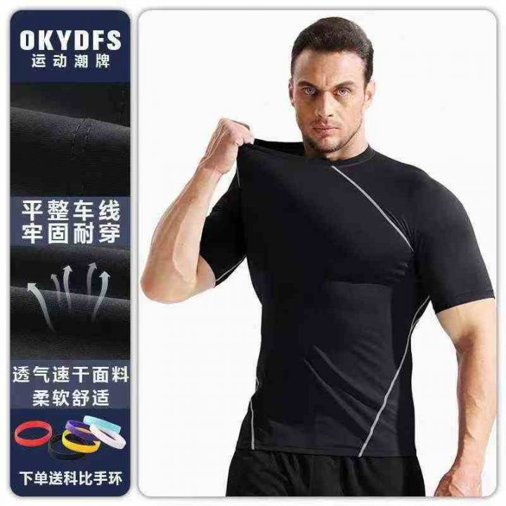 健身衣男紧身衣短袖跑步运动速干t恤弹力透气T恤独立包装带吊牌,码数M-4XL,550件,全清4.8分货➕0.5