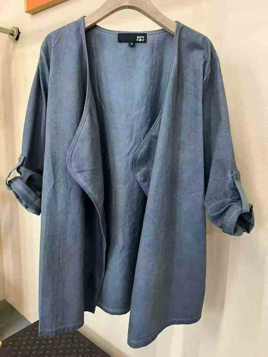 品牌外贸原单开衫外套,数量113件,码数SML单款蓝色,袖子两种穿法,面料挺括有型,类似仿牛仔面料,独立包装!