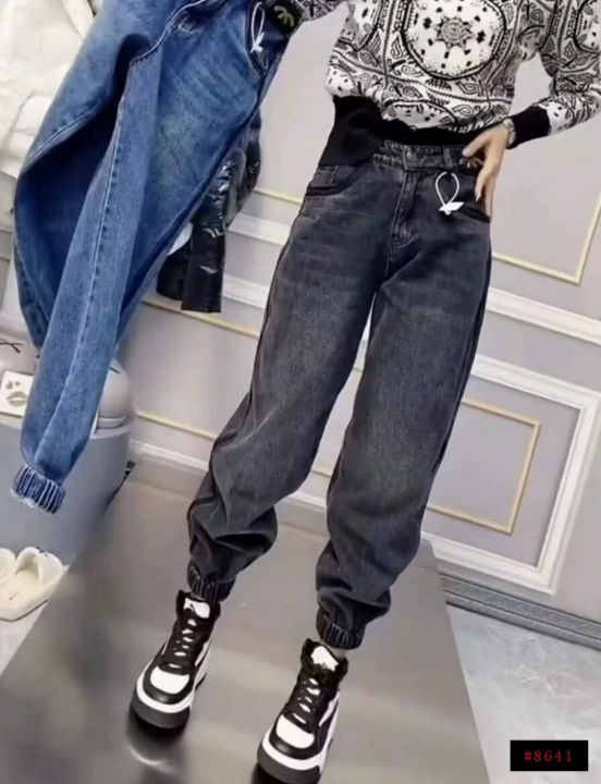 春秋新款宽松百搭松紧腰直筒牛仔裤,独立包装带吊牌,码数S- 3XL码,310件...
