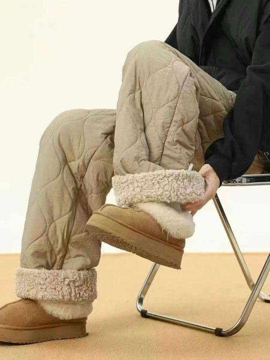 防寒休闲羊羔保暖裤男女冬季潮宽松葫芦纹防水直筒裤加...