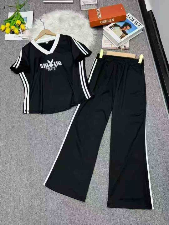 全清9.5运动套装女拼色假两件休闲装2025夏季短袖长裤...
