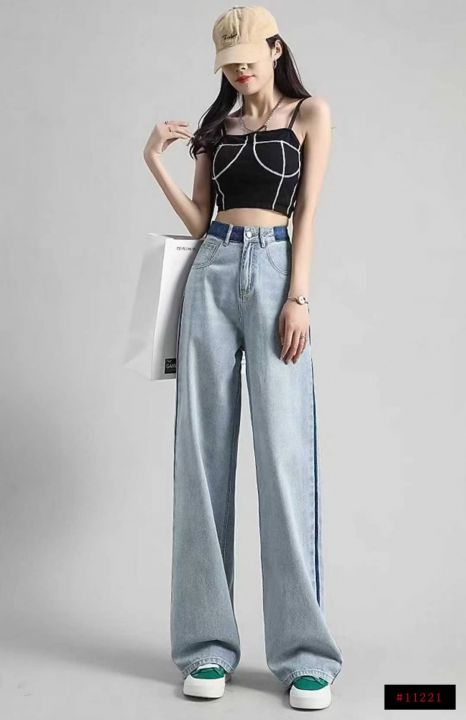 捡漏款,春秋新款网红设计款直筒阔腿牛仔裤,独立包装...