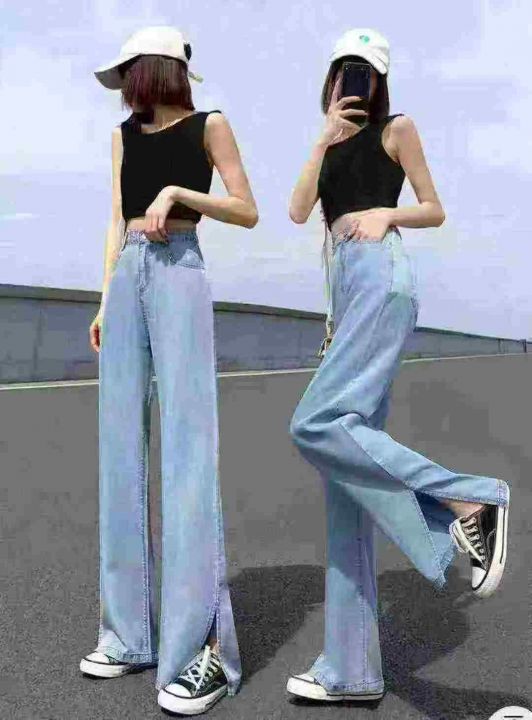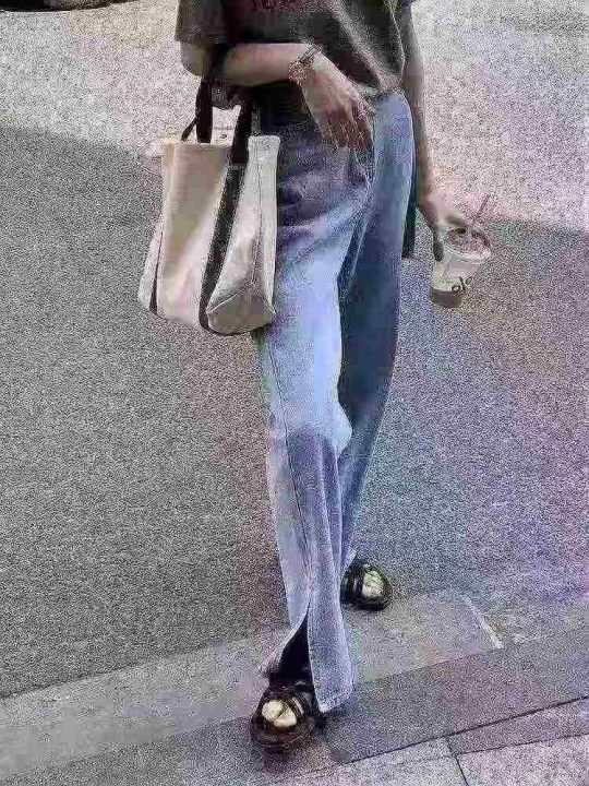 全清9.8垂坠感女装mm宽松显瘦高腰破洞开叉牛仔裤,网络...