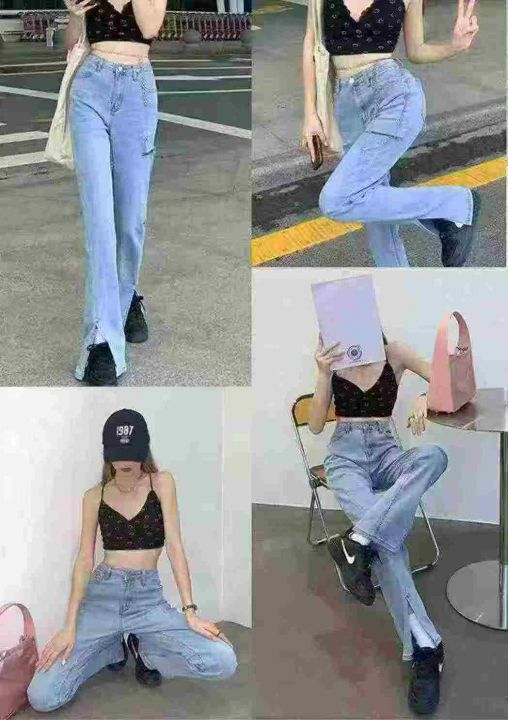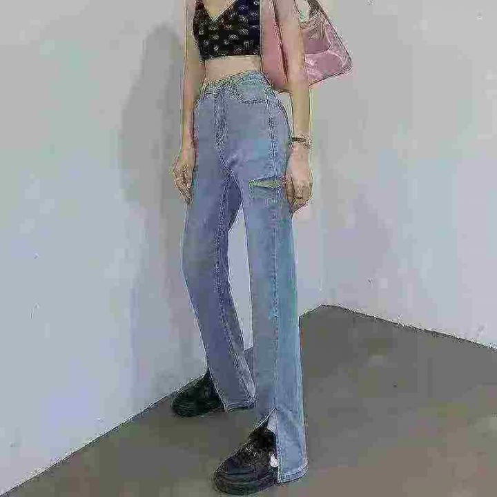 垂坠感女装mm宽松显瘦高腰破洞开叉牛仔裤,网络图仅供参考,码数:XS-XL,数量281条,独立包装