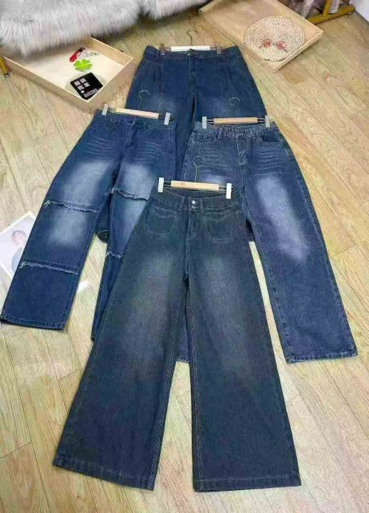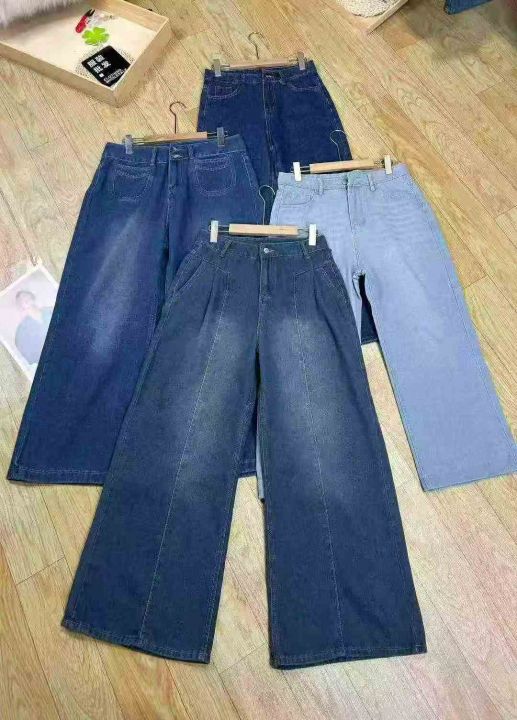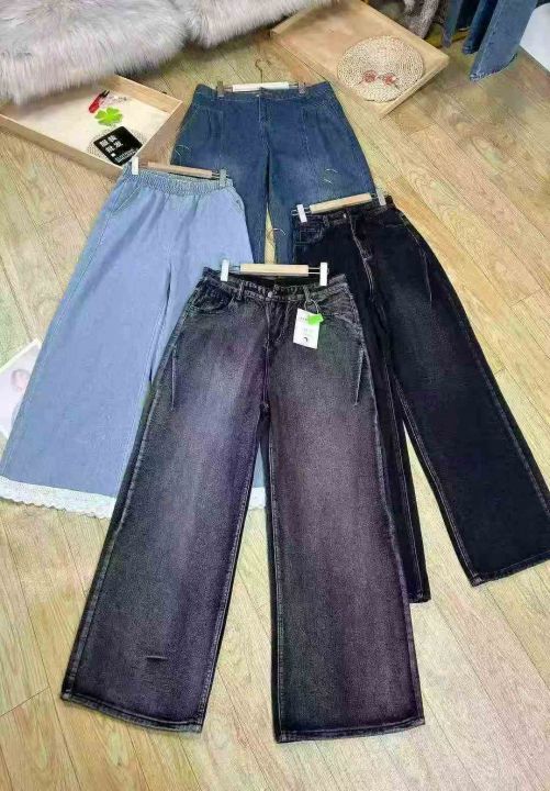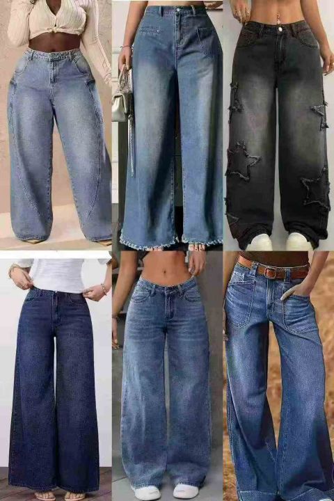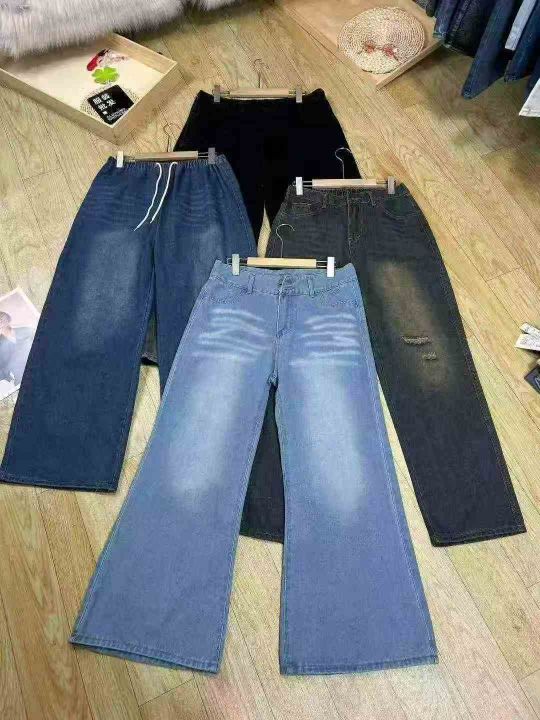 #Lady jeans wholesale外贸单大码宽腿直筒阔腿女士牛...