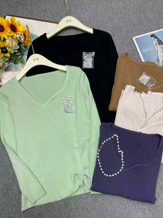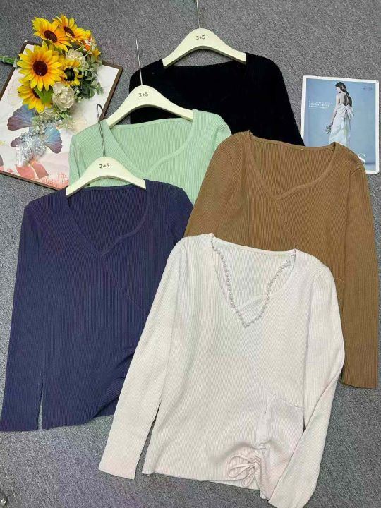 捡漏款,秋季新款弹力修身显瘦V领褶皱套头毛衣,独立包装,单款多色,均码...