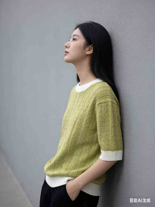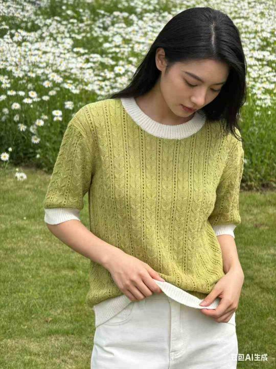 全清9.9,橄榄绿撞色针织毛衣短袖,独立包...