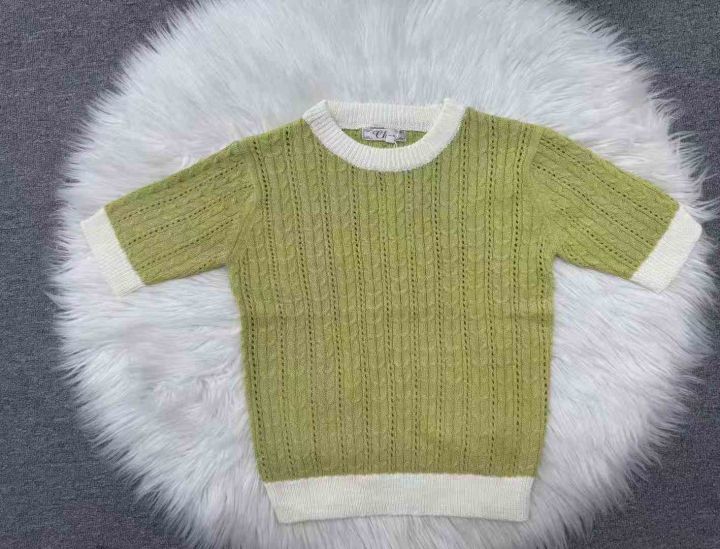 全清9.9,橄榄绿撞色针织毛衣短袖,独立包装吊牌,均码,共36件,不分货