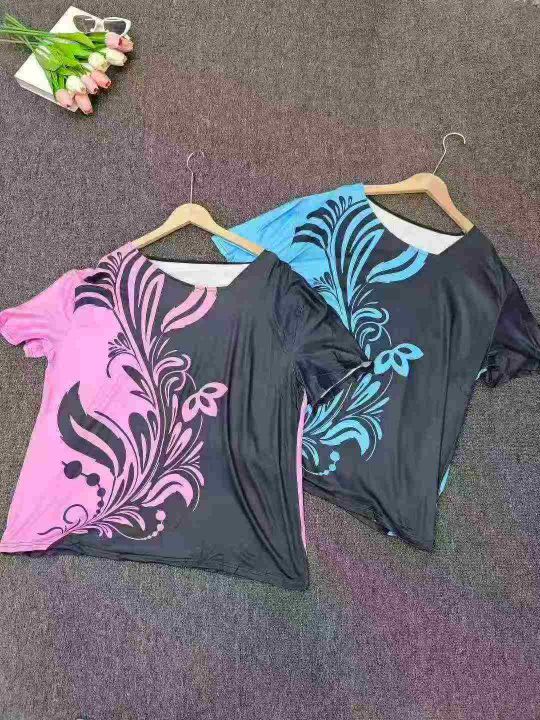Printed Diagonal Neck Women\'s Short Sleeves印花斜领女式短袖