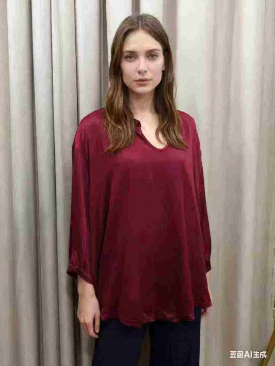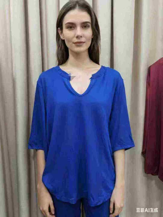 外贸款小V领七分袖T恤女早秋季大码胖mm内搭打底衫不规...