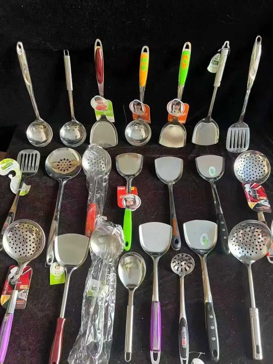 不锈钢锅铲煎铲炒菜铲子家用汤勺漏勺,平均几毛钱,原箱原件处理,最后25吨,按吨处理,要搞的赶紧。[破涕为笑][破涕为笑][破涕为笑]