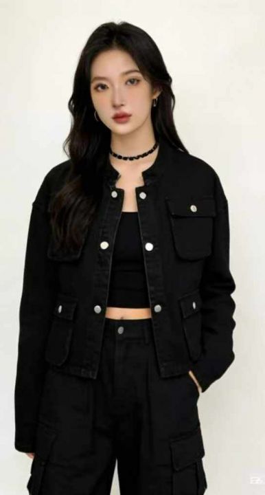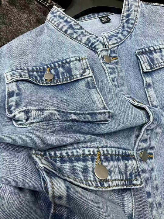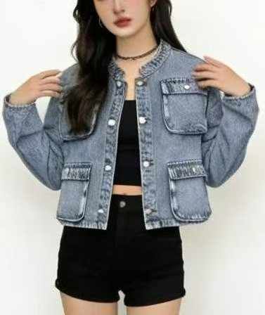 春秋新款宽松短款洗水棉多袋工装牛仔外套,独立包装,...