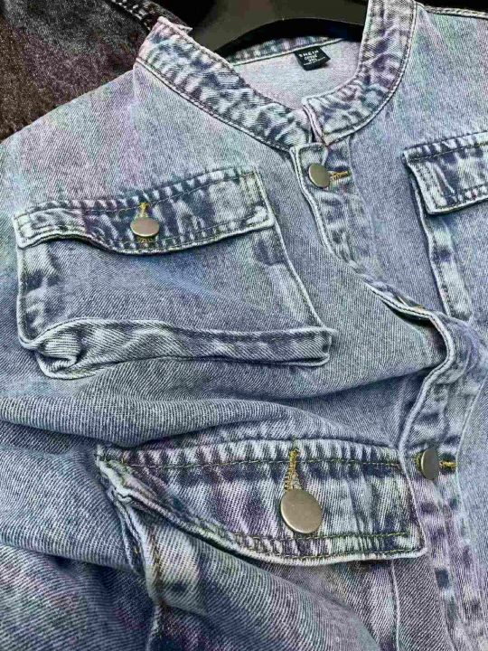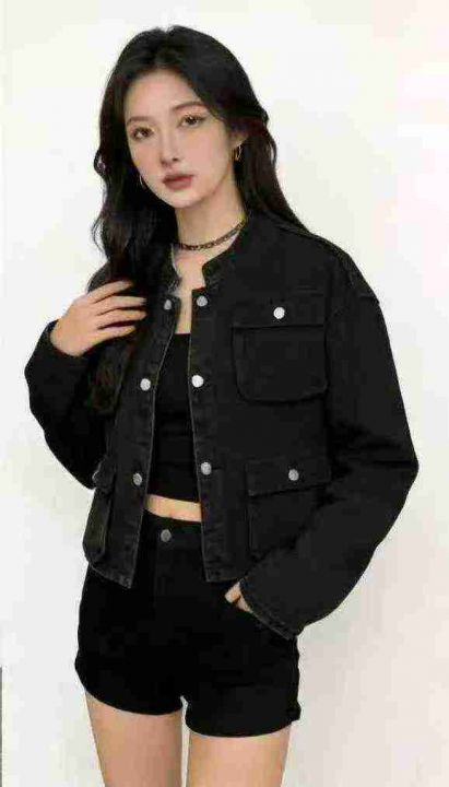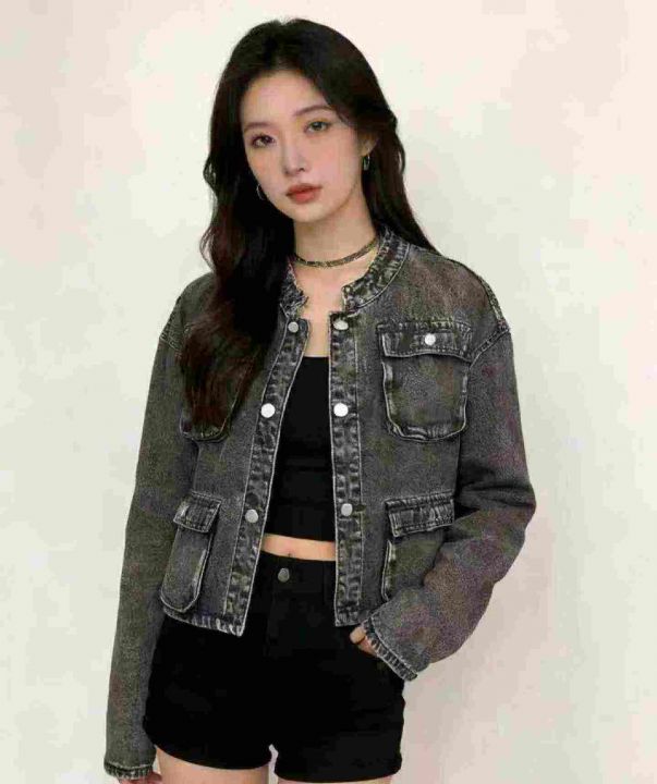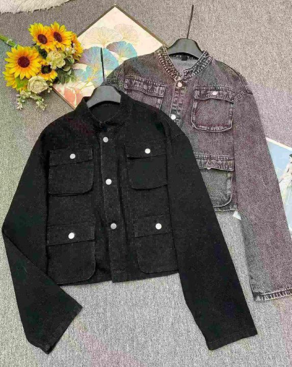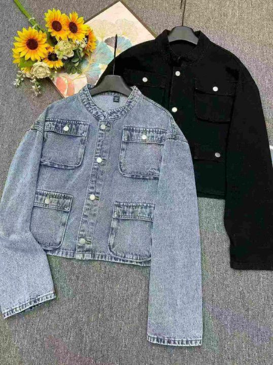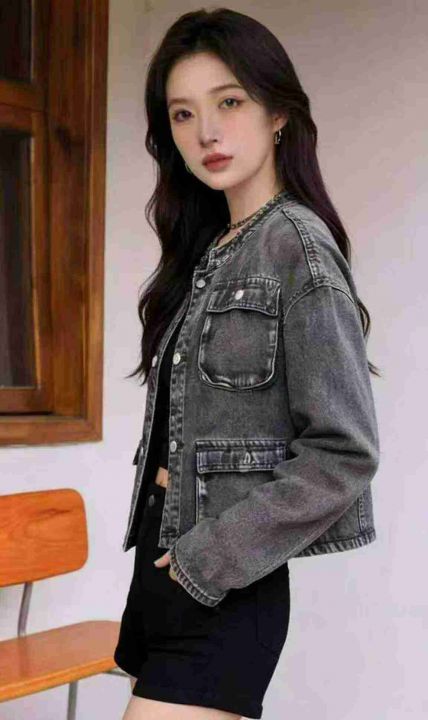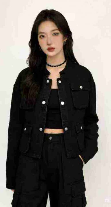 春秋新款宽松短款洗水棉多袋工装牛仔外套,独立包装,...
