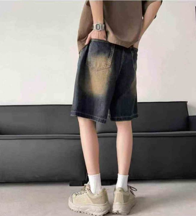 牛仔短裤男士夏季新款美式复古vibe高街潮牌休闲宽松五...