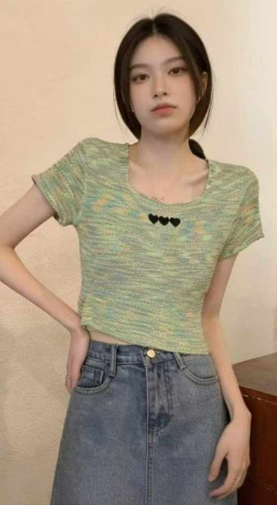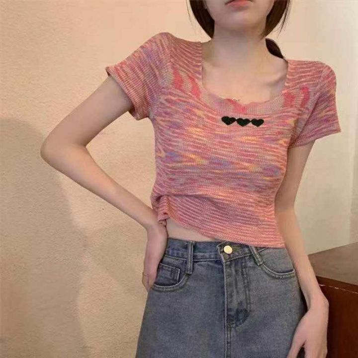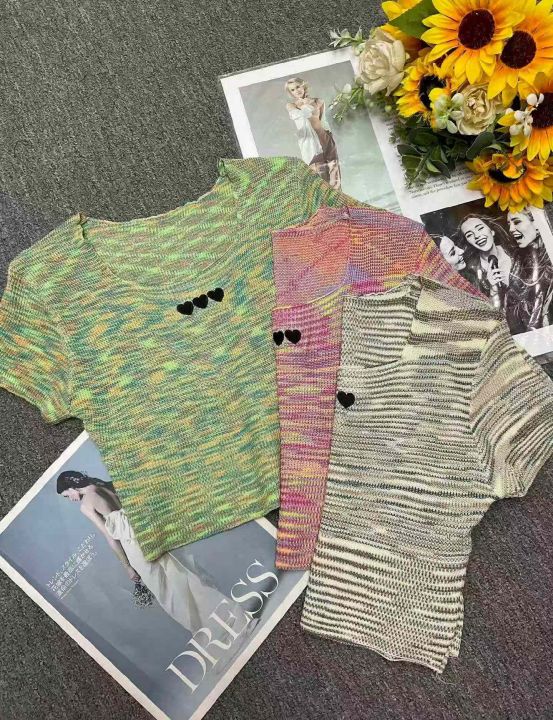 夏季新款撞色彩虹条纹刺绣针织短袖T桖,独立包装,均码面料柔软舒适弹力大,682件,全清5.9元超低价秒杀!分货加一!