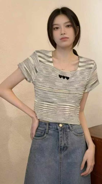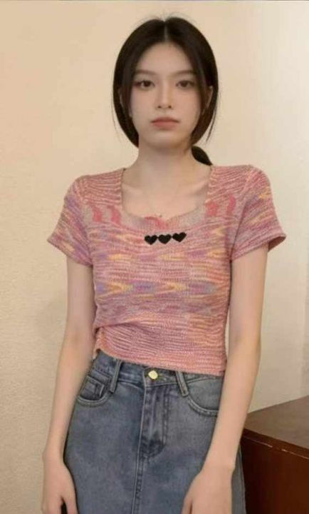 夏季新款纯欲风v领设计感抽绳小心机针织短袖小衫,独立包装,均码面料柔软...