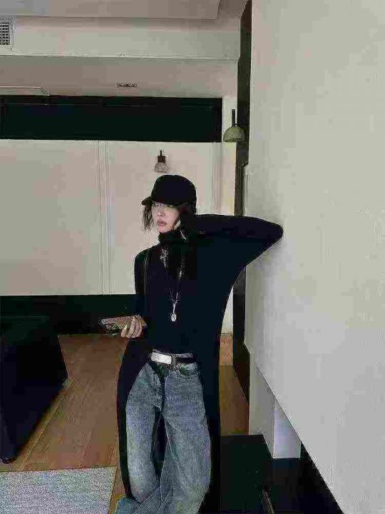 秋冬小众设计高领开叉显瘦针织毛衣,单款单色,数量57...