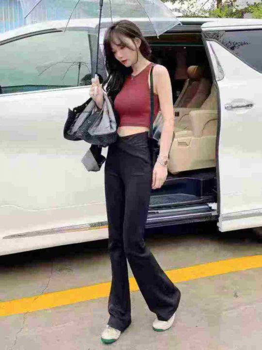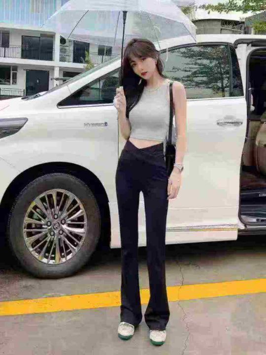 ① 辣妹交叉v腰弹力提臀开叉微喇裤!高垂感,独立包装...