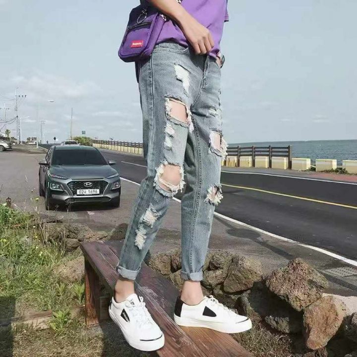 春夏季新款男士洗水棉网红破洞潮牌个性牛仔裤,独立包...