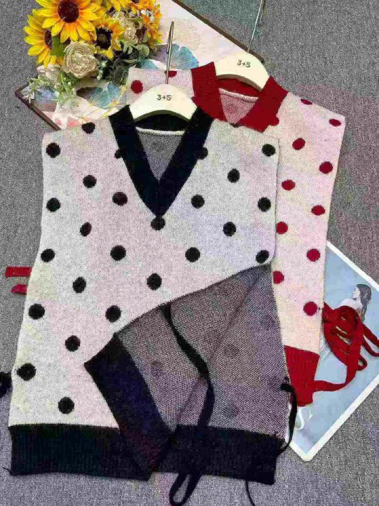 春秋新款韩版宽松网红波点北极绒毛衣马甲,独立包装,...