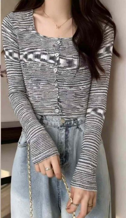 春秋新款网红复古撞色彩虹条纹针织毛衣开衫,独立包装...