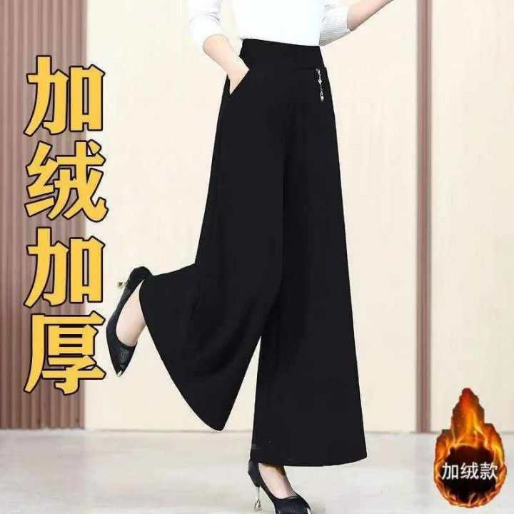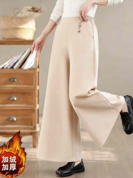 冬季新款复古加绒加厚宽松松紧腰大阔腿休闲裤,独立包...