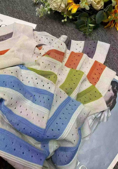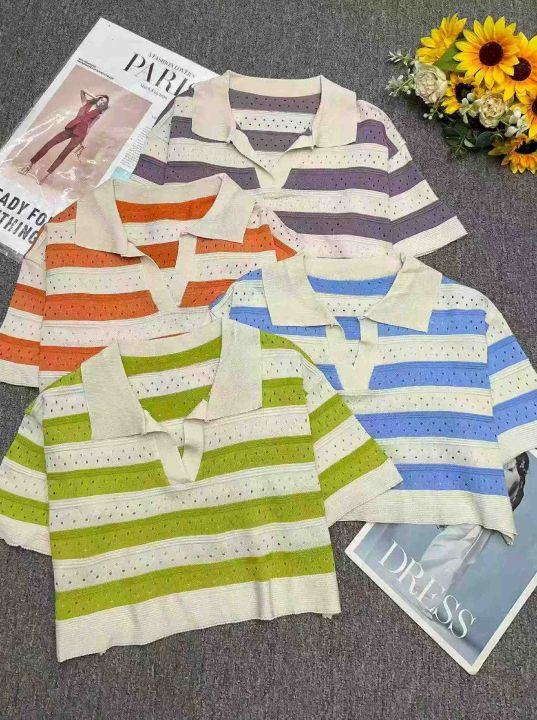 夏季新款撞色条纹短款宽松Polo领针织短袖T桖,独立包装,均码面料柔软舒适,1370件,全清5.9元超低价秒杀!分货加一!