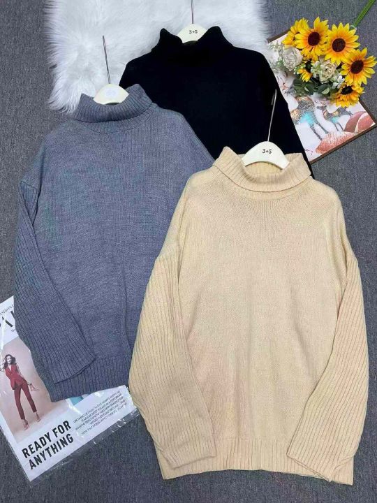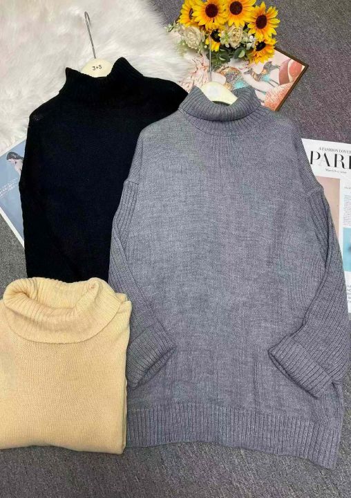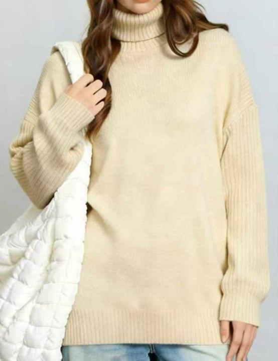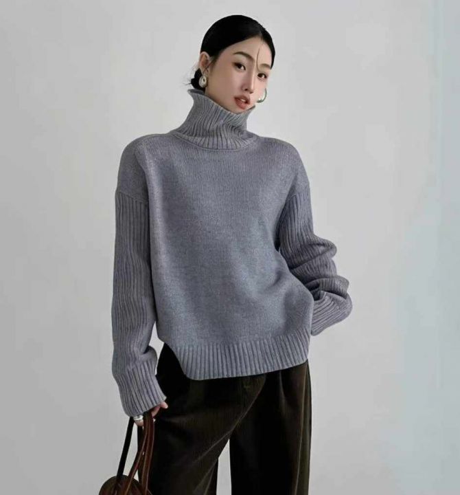 秋冬新款高品质宽松百搭复古慵懒中长版半高领加厚北极绒套头毛衣,独立包装...