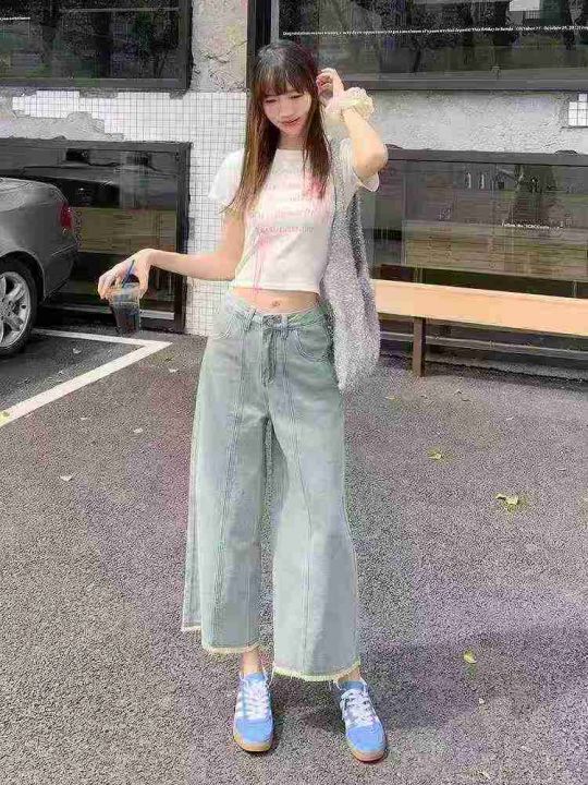 6.9清电商仓回收784件靓妹复古慵懒遮胯宽松八分牛仔裤...