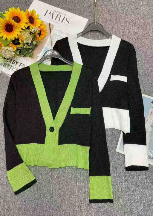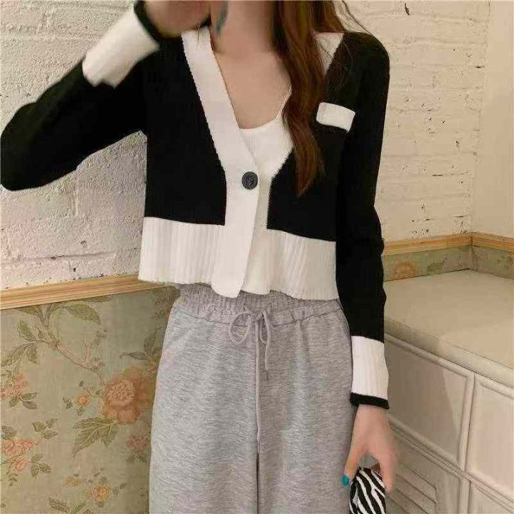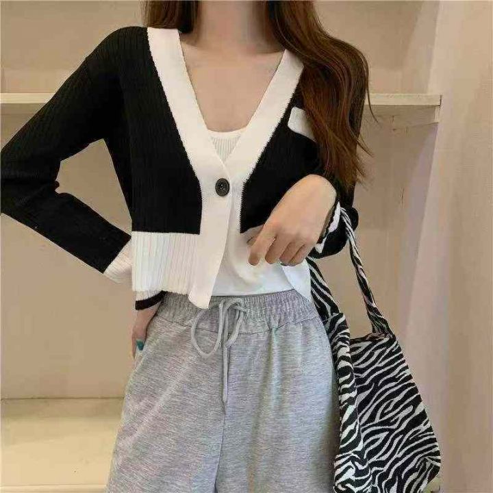 春秋新款复古港味撞色一粒扣针织毛衣开衫,独立包装,...
