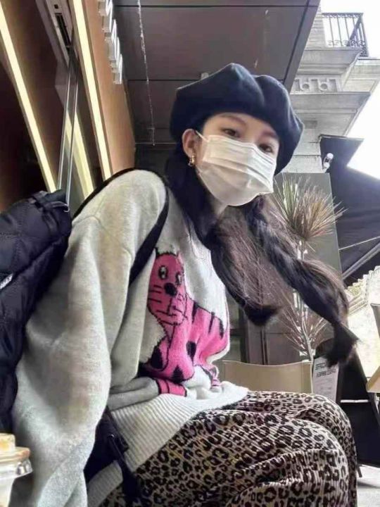 9.9清100件秋冬款韩版卡通小猫咪提花,慵懒学院风套头宽松设计针织毛衣,新...